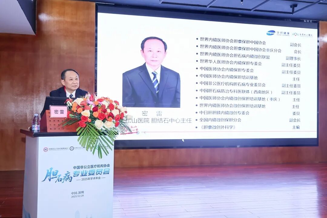 近日,由中国非公立医疗机构协会、深圳市非公立医疗机构行业协会联合主办,中国非公立医疗机构协会胆石病专业委员会2025年学术年会召开,中国非公立医疗机构协会胆石病专委会副主委、重庆松山医院胆结石中心主任密雷应邀参加。