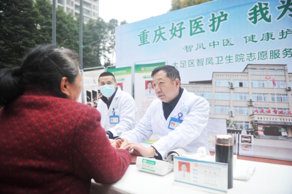 在活动现场,智凤卫生院院长、“重庆好医生、重庆好护士”钟才能耐心接待每一位居民。一位居民诉说脚软、口苦、头晕等症状后,钟才能细致检查并给出诊疗建议:“这是肝阳上亢,饮食要清淡,配合服药调理。”另一位居民也因肩颈疼痛、风湿不适前来咨询,钟才能一边开方一边宽慰老人。同时,智凤卫生院副院长、主治医师陈龙也为多名慢性病患者提供细致服务。