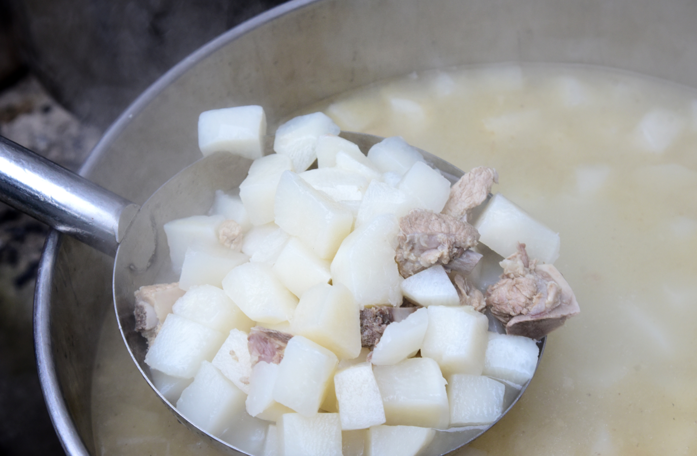 市民游客品尝赶水草蔸萝卜宴。(石汉谋 摄)