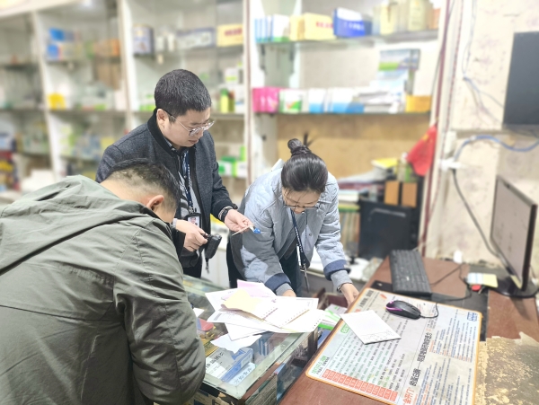 大足区卫生监督所执法人员对药店开展诚信检查。