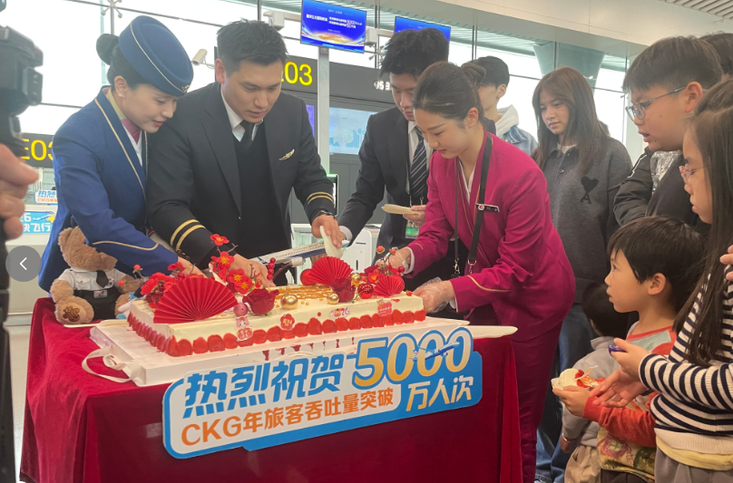 当日下午,重庆江北国际机场迎来发展史上重要一刻——年旅客吞吐量首次突破5000万人次,正式迈入全球机场“5000万俱乐部”。这也是继机场年货邮吞吐量突破50万吨后(预计全年完成近55万吨),实现的又一重大跨越。