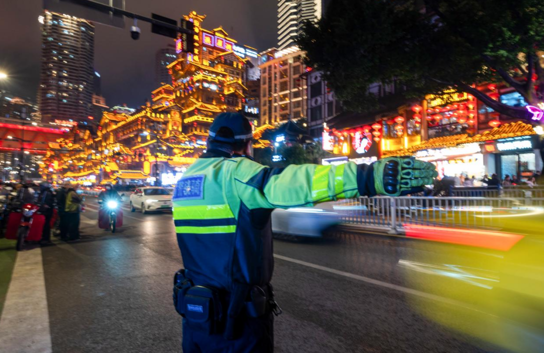 2026年元旦期间,重庆市节日氛围浓厚,也迎来了客流高峰。重庆市公安局民警坚守岗位,聚焦商圈景点、交通枢纽等重点区域,开展巡逻防控、交通疏导、便民服务等工作,以保障市民和游客度过一个安全祥和的节日。