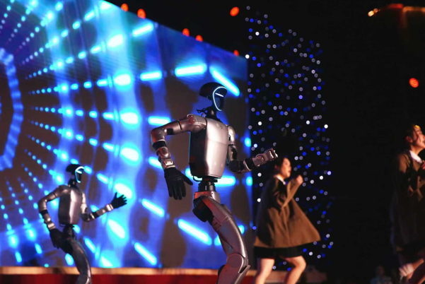 巴川学子和机器人共舞。