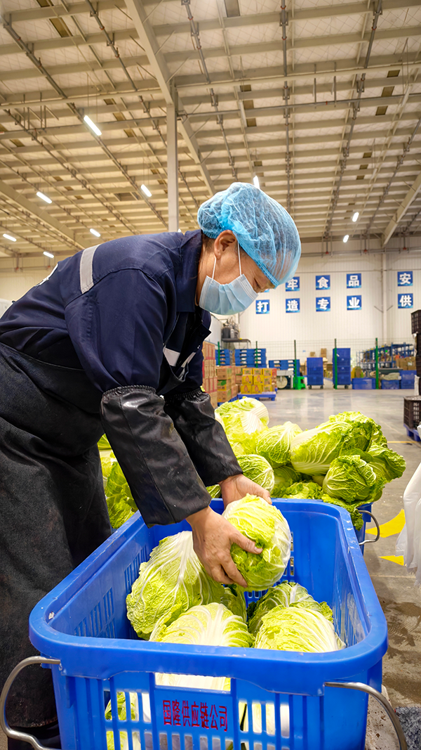所有食材统一进入“中央仓”,先由供应商进行初检,再由“中央仓”进行每日蔬菜农残、肉类兽残快检,确保每批食材安全可溯、品质可控,而非直接从供应商送达学校。