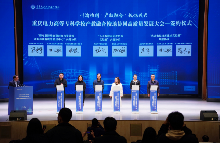 学校还与四川天府永兴实验室、北京特种机械研究所、南昌大学重庆研究院、中海油气电集团有限公司、绵阳京东方光电科技有限公司等10家科研机构、央地企业签订科研平台共建协议和人才联合培育协议,助力学校技术技能人才培养和产业关键技术攻关,促进产业链、人才链深度融合、相互赋能。