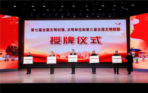 第七届全国文明村镇、文明单位、第三届全国文明校园授牌仪式。(熊伟 摄)
