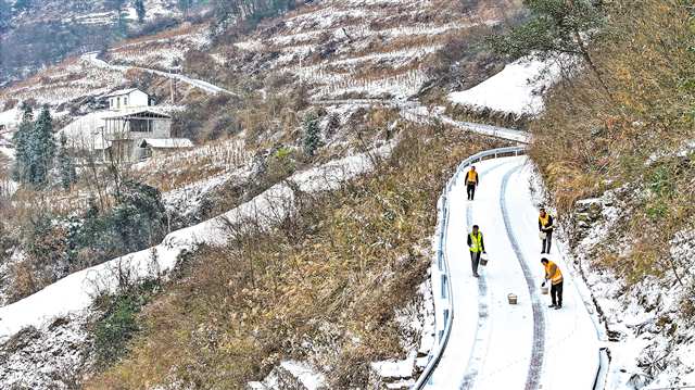 受低温雨雪冰冻灾害影响的各区县,都提前部署,并及时清理结冰路面,确保交通畅通。