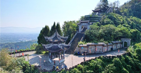 梁平区滑石古寨景区,市民游客在登山游玩。(资料图)