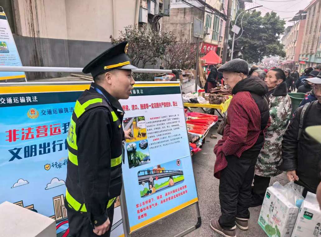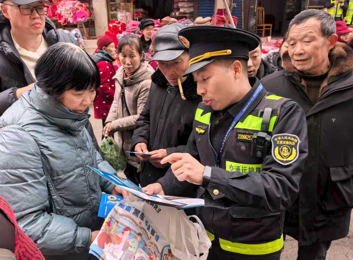 随着春节临近,春运即将拉开帷幕。为筑牢道路交通安全防线,提升群众出行安全意识,1月27日,重庆交通执法总队高速公路第二支队二大队联合市公安局交通管理总队高速公路第二支队梁平大队、重庆梁开高速公路有限公司及新胜镇政府,利用乡镇早集人流密集的契机,在新盛镇集市共同开展了一场“接地气”的春运安全宣传活动,为居民送上实用“安全礼包”。