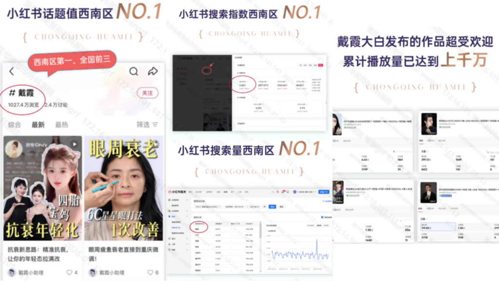戴霞的市场热度同样一骑绝尘:在小红书平台,她的搜索指数、搜索量、话题值常年稳居西南地区第一、全国前列,作品累计播放量已达上千万,是名副其实的“全网最受欢迎的注射医生之一”。她的案例、理念和打法,甚至成为同城乃至全国部分注射医生逐帧学习的范本,这也从侧面印证了戴霞医生的行业标杆地位。