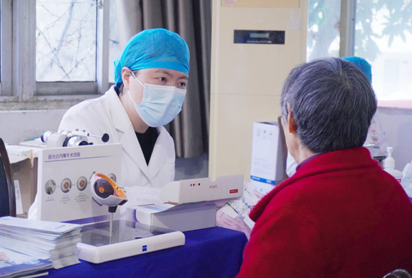 义诊环节,医护人员为退休教职工免费开展视力检测、眼压测量、裂隙灯检查及眼底等基础筛查,细致排查眼部隐。针对检查结果进行一对一解读,为存在眼部健康隐患的居民给出个性化诊疗建议,并建立详细的健康档案以便后续跟踪随访。