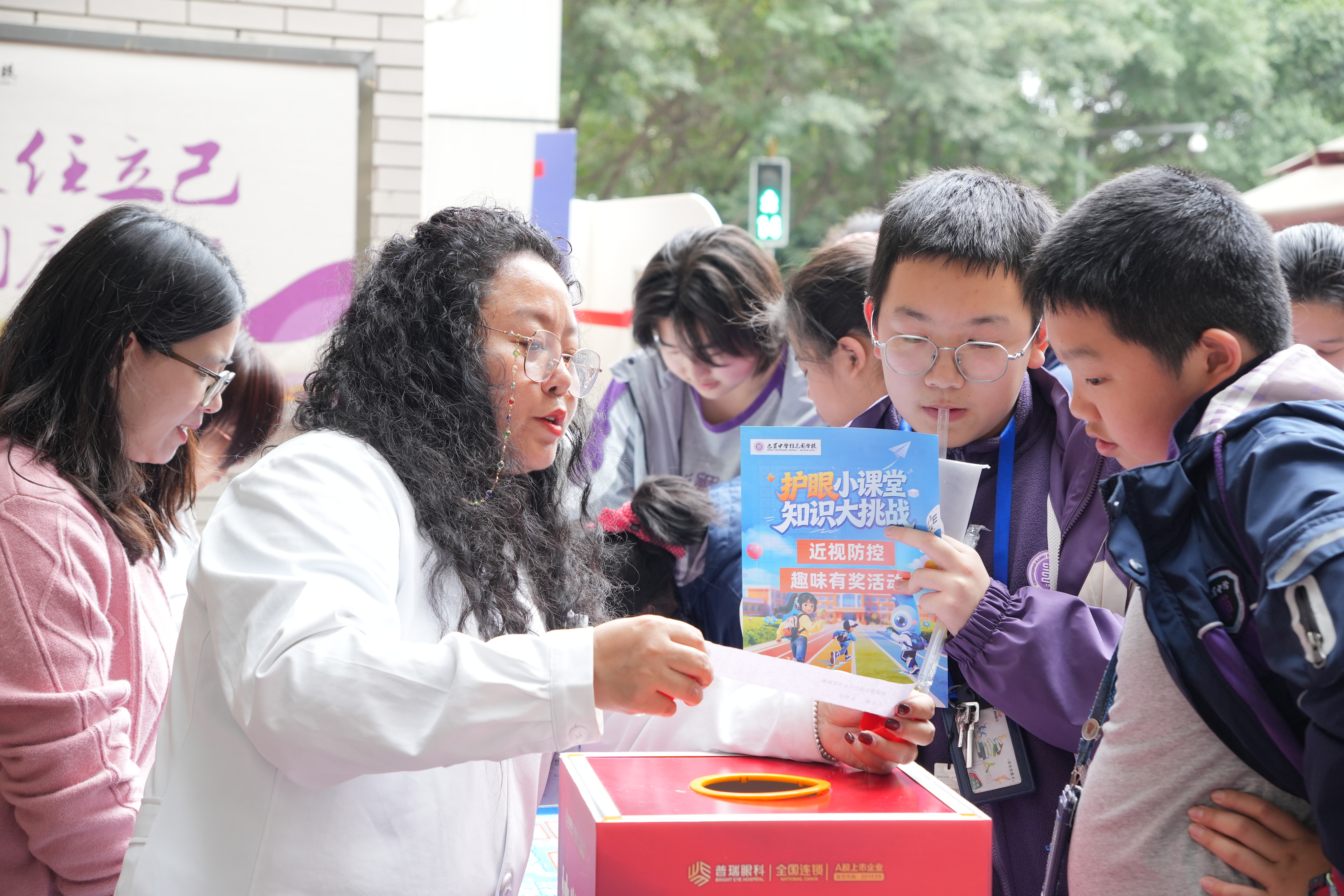活动现场,重庆普瑞眼科医院近视防控团队为师生们提供了视力检查、屈光度数检查、眼镜清洗、眼科问题现场咨询等服务,并根据孩子们具体情况进行眼部健康评估,给出用眼习惯、日常饮食以及户外运动等多方面的个性化防控指导方案,帮助家长更好地管理孩子的视力健康。