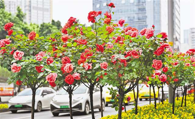 因地制宜+科学养护 重庆树状月季刷新城市“颜值”