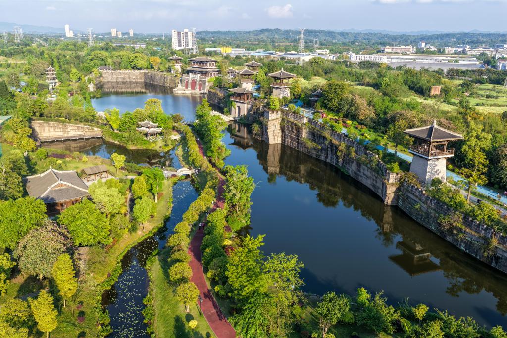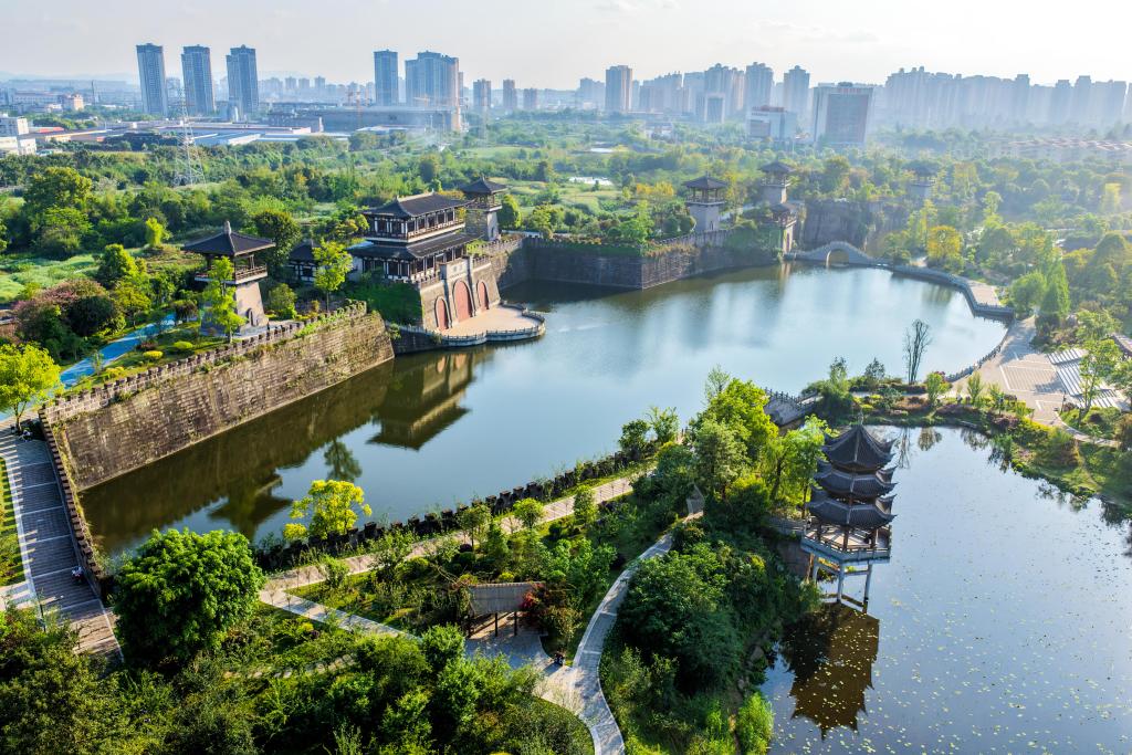 这是4月11日拍摄的玉带河公园景色(无人机照片)。新华社记者 唐奕 摄
