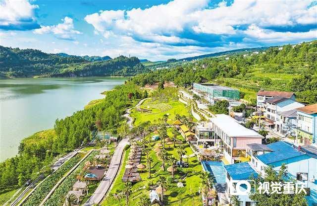 石柱桥头镇,阳光照耀下的湖畔,各具特色的民宿林立。(重庆日报资料图片)记者 尹诗语 摄\视觉重庆
