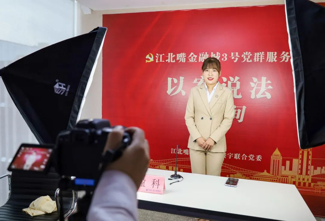 ▲江北嘴金融城3号党群服务中心“以案说法”直播间。曹检/摄
