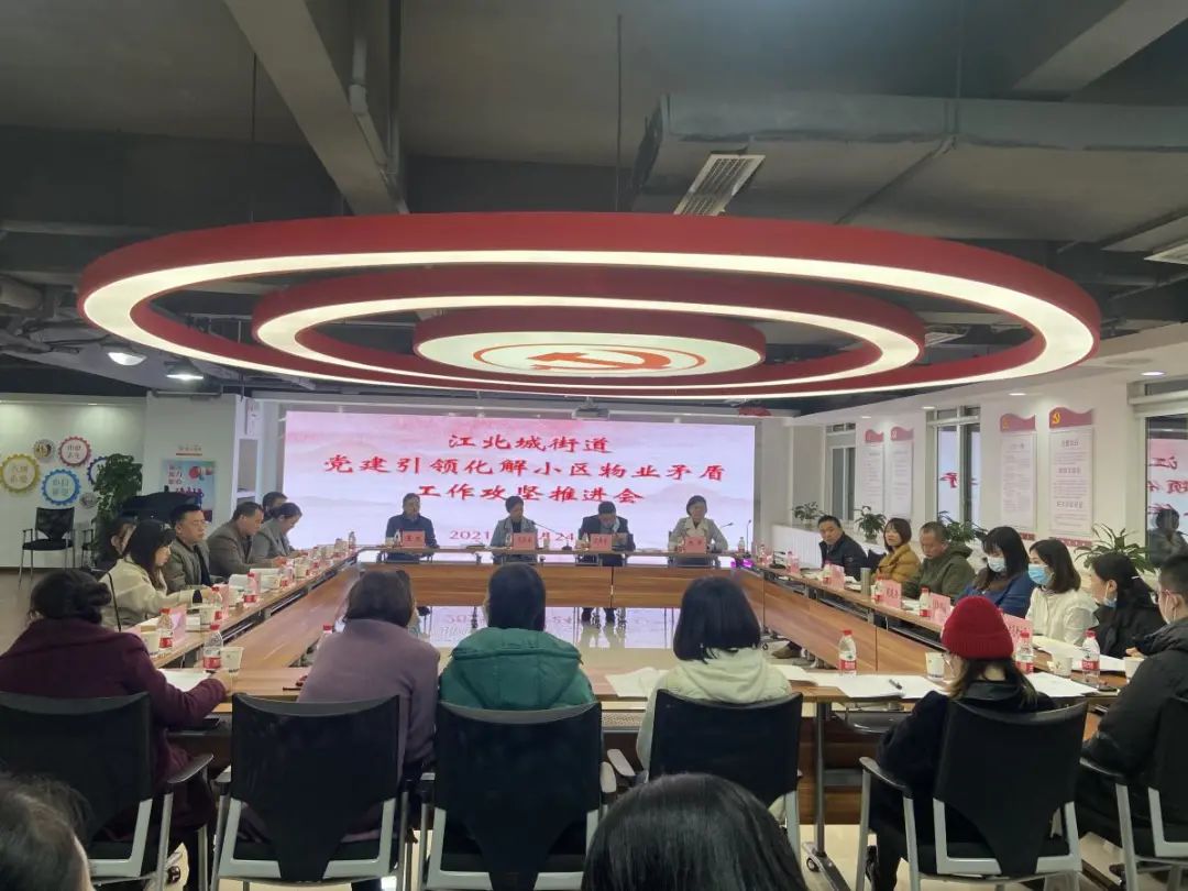 ▲江北城街道召开党建引领解决小区物业矛盾工作推进会。汪晶晶/摄
