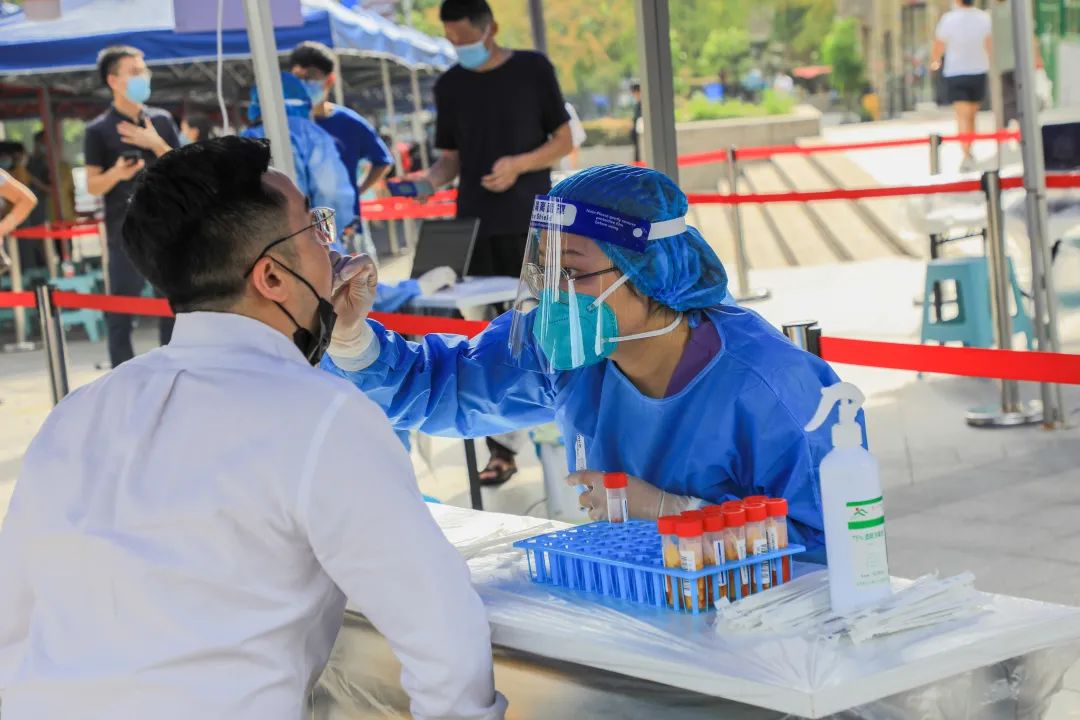 在近日的社会面核酸检测筛查中,街道因地适宜、分时施策,在不挤占全区医疗资源的情况下,设置江北嘴中央公园6个核酸采样台,极大便利了楼宇企业职工的核酸检测。