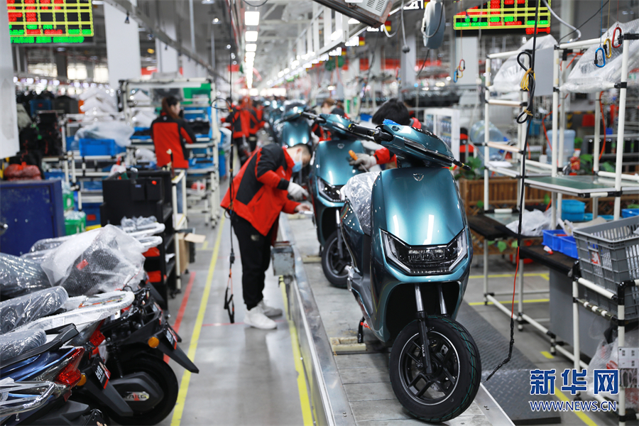 台铃在江苏无锡生产的新能源电动车。(资料图)新华网发