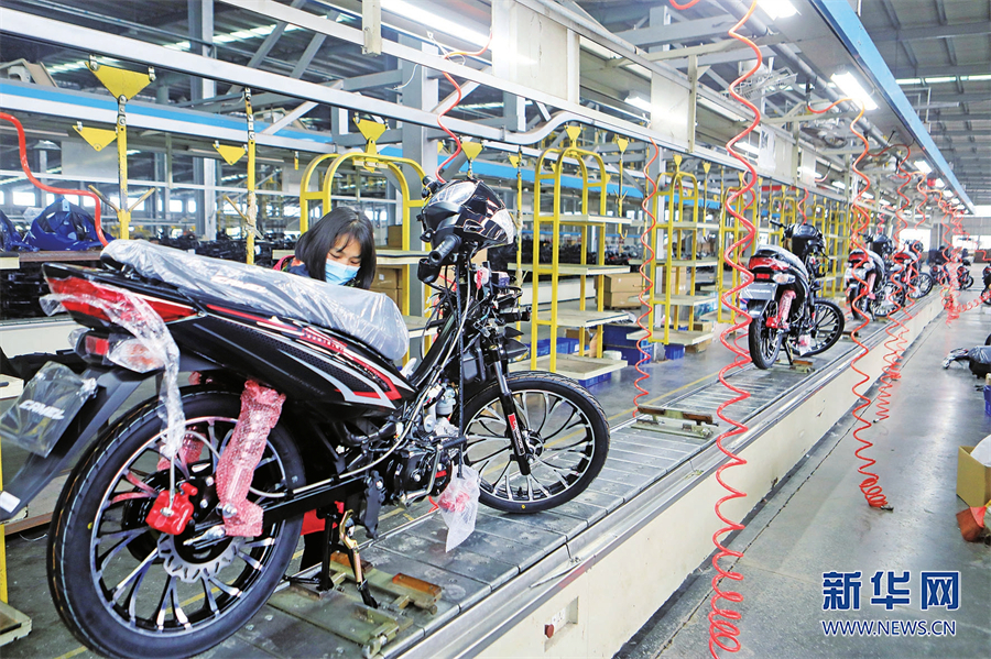 园区摩托车整装生产线。新华网发