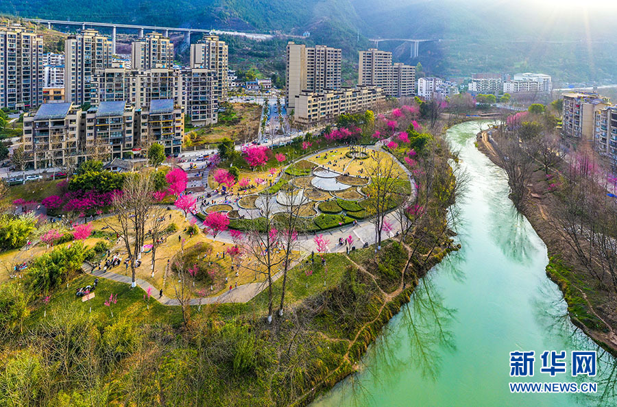 近年来,重庆巫溪一边打造生态河堤,一边打造柏杨河湿地公园,这里已成为当地百姓的绝佳休闲场所。新华网发(王强 摄)