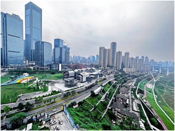 由空中俯瞰,从千米江岸风光,到尽享亲水空间的巴渝风貌,再到退台式的行梯步道之上遇见艺术感十足的三洞桥PARK,视觉仿佛也从过去穿越到未来,别有一番滋味。