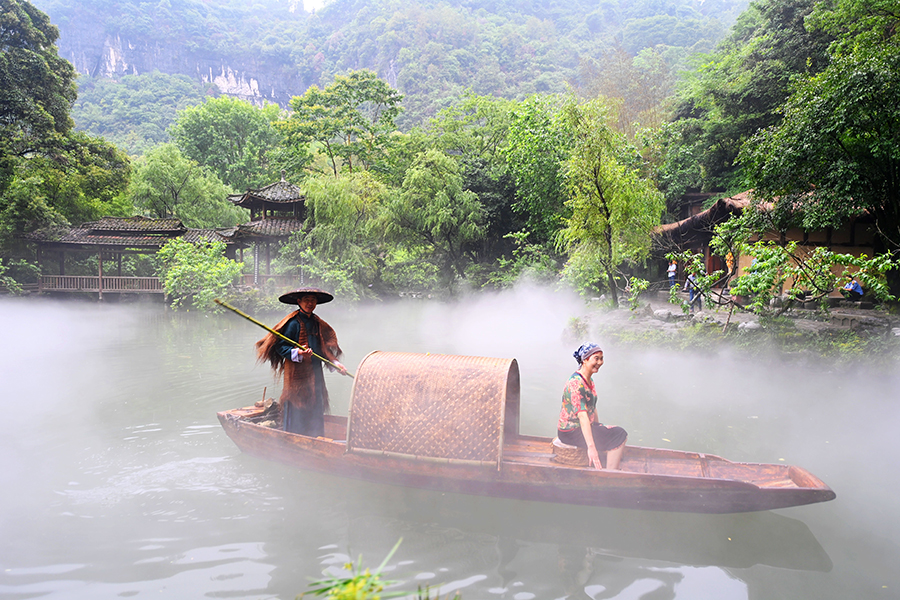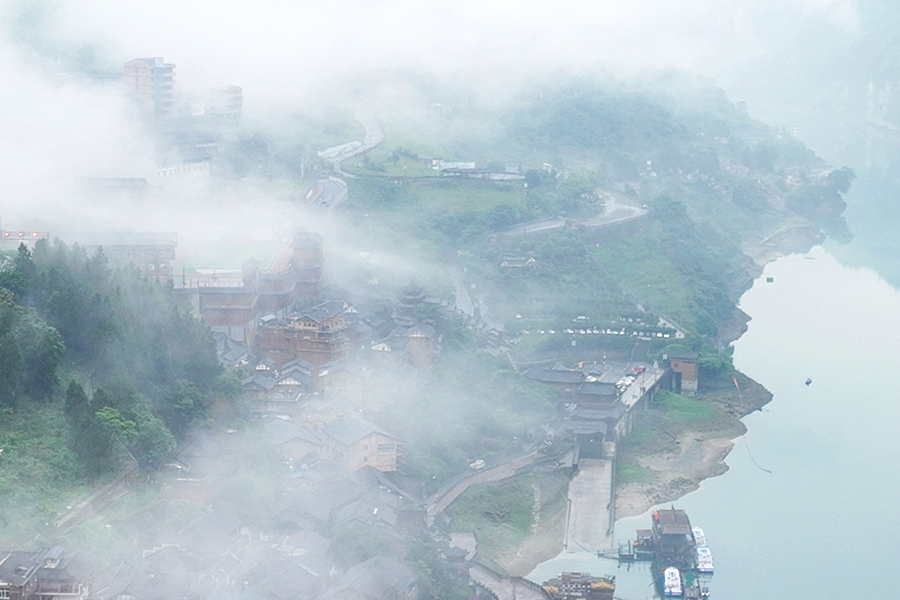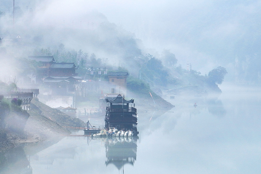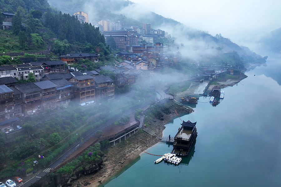六月的龚滩古镇有多美?吊脚楼群依山而建,云雾袅袅江水盈盈。摄影:陈碧生