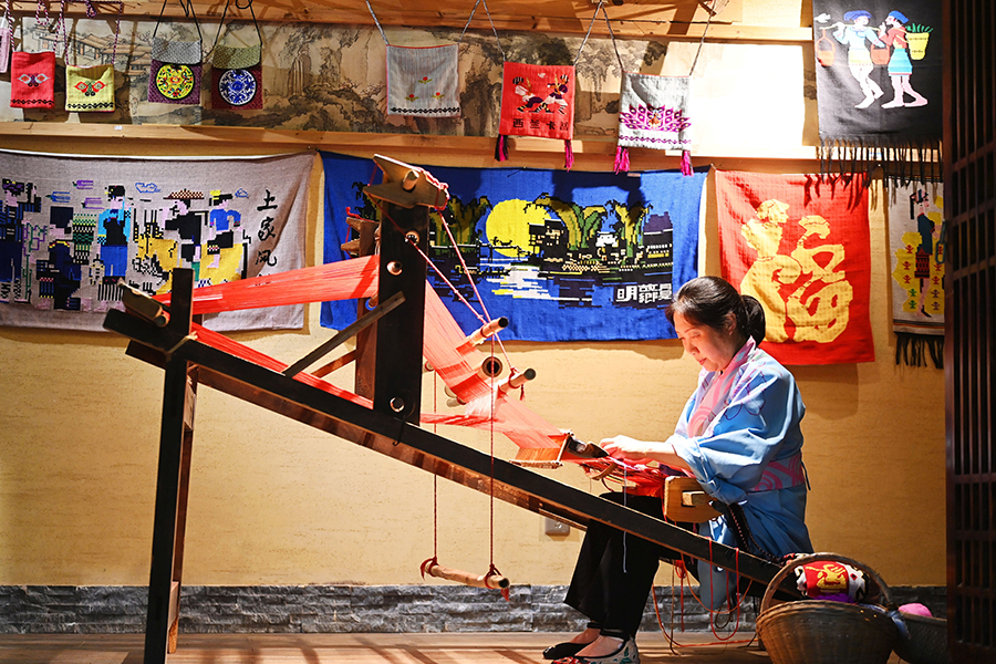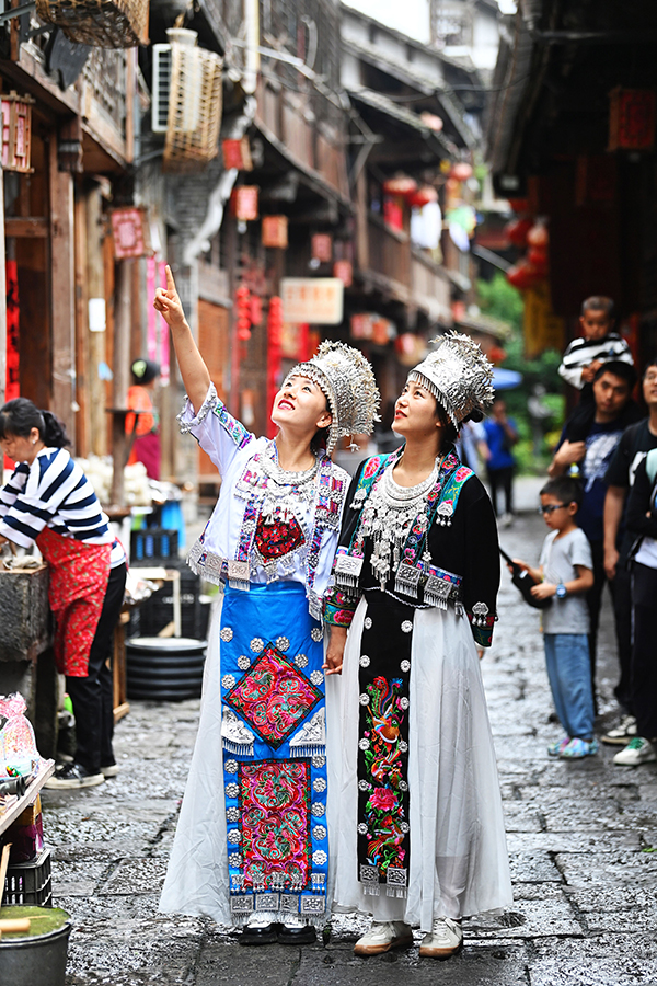 古镇街道上,民族姑娘演绎别样风情。摄影:陈碧生