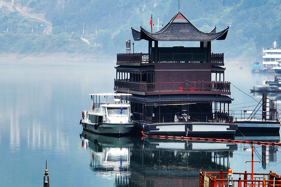古镇码头的船舶尽显古韵。摄影:陈碧生
