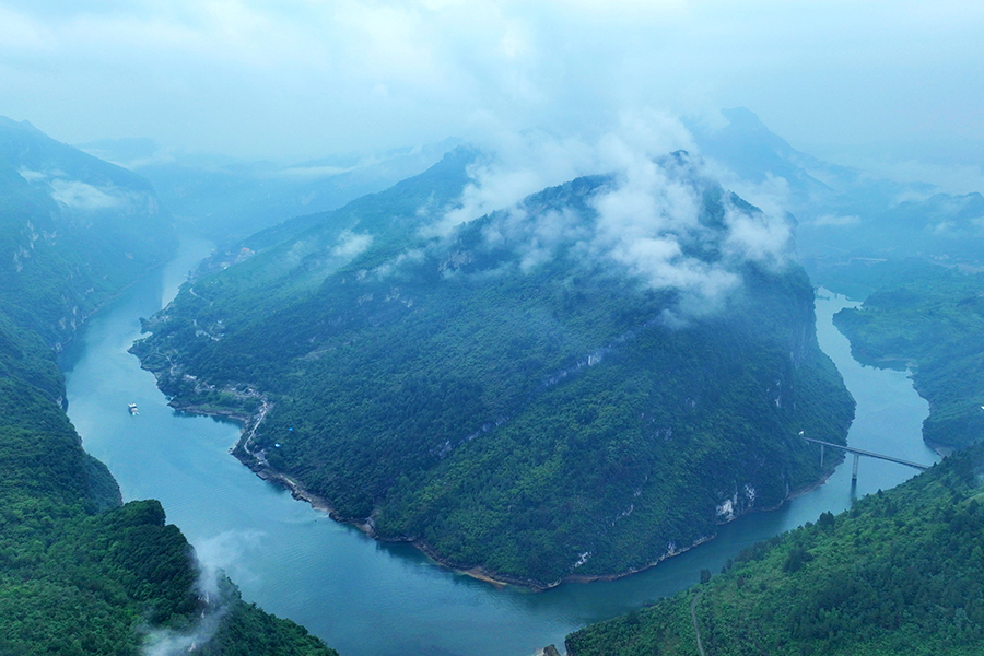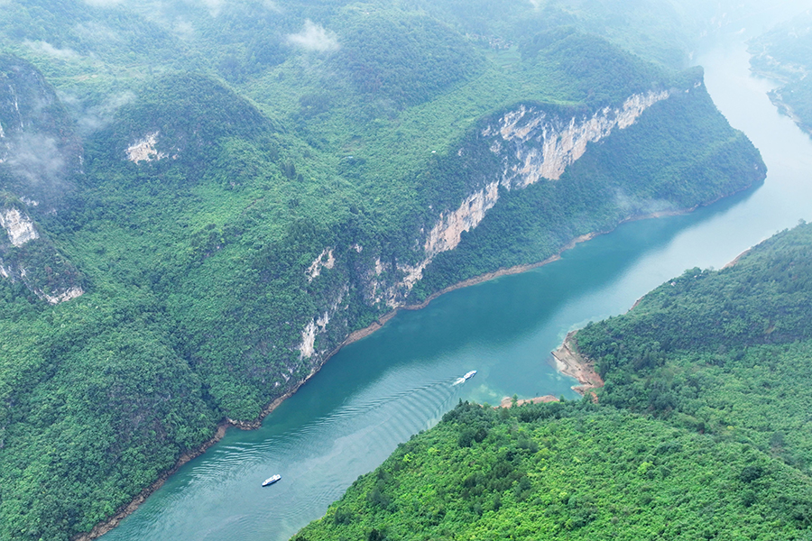 高空俯瞰,乌江画廊如碧玉。摄影:陈碧生