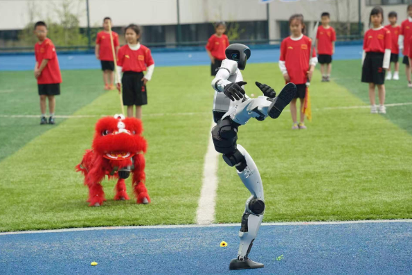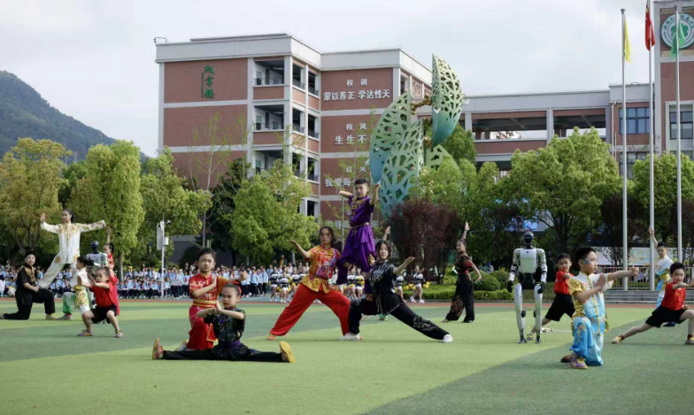 本届运动会亮点纷呈,科技与体育深度融合成为核心特色。作为全国科技体育传统校,学校将人工智能元素融入赛事开幕式,宇树G1-U2智能机器人与机器狗列队亮相,与社团学生同台表演,上演智能科技与传统体育的精彩碰撞。孩子们与机器人、机器狗深度互动,零距离感受科技魅力。