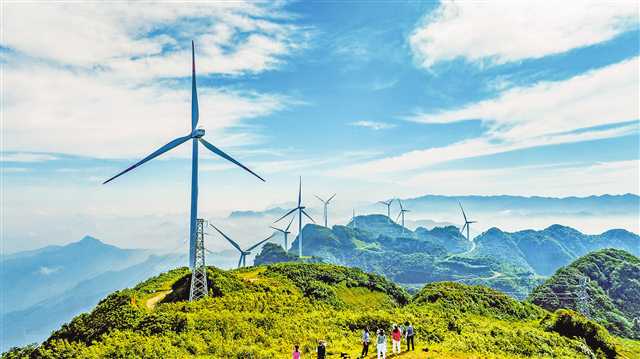近年来,该区充分利用当地丰富的高山风能资源,因地制宜发展环保清洁的风电产业和乡村旅游,实现生态效益与经济效益双丰收,助力资源型城市高质量转型可持续发展。(特约摄影 曹永龙/视觉重庆)