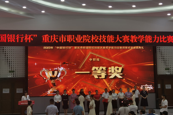 7月13日,在重庆电子工程职业学院举行的2023年重庆市职业院校技能大赛教学能力比赛闭幕式上,渝中职教中心教师在现场决赛中发挥出色,公共基础课程组(中职组)龙樱、陈婷婷、周虹和李家勇获得一等奖;专业技能一组(中职组)周晓渝、龙妮妮、胡璇和廖灵获得二等奖;专业技能二组(中职组)苏畅、付瑾和谷尧获得三等奖。