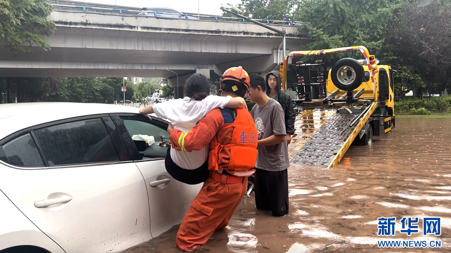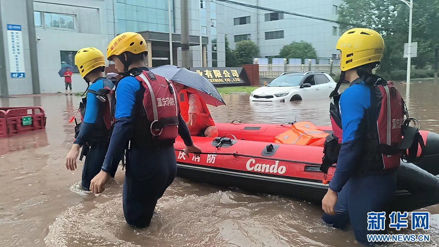 大渡口区消防救援支队消防员正在转移被困市民。新华网 发
