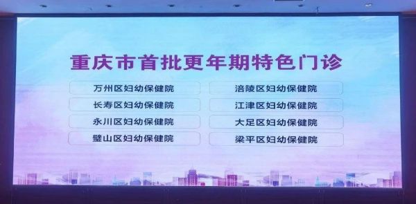 为提高全市更年期保健工作质量,推进妇幼保健机构更年期保健工作发展,近日,由重庆市卫生健康委员会主办,重庆市妇幼保健院、重庆市江津区妇幼保健院承办的重庆市首批更年期特色门诊授牌仪式在江津区举行,梁平区妇幼保健院等8家医院被授予“重庆市首批更年期保健特色门诊”。