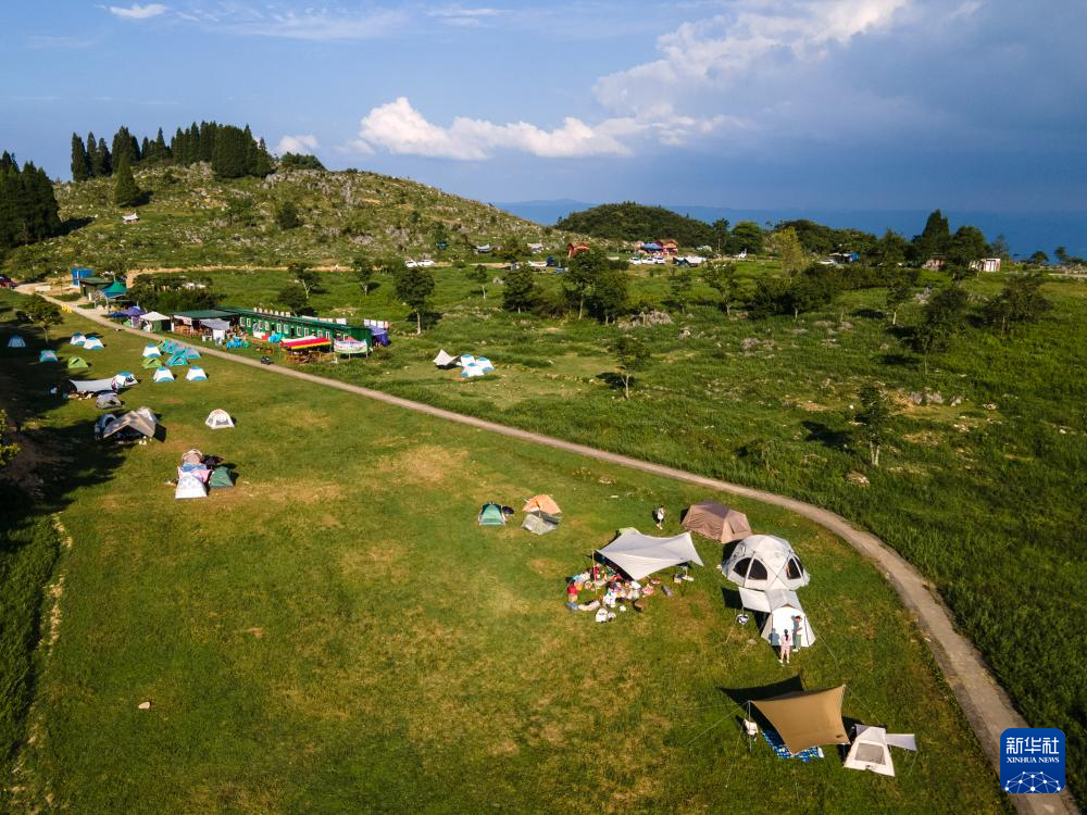 8月16日,游客在重庆市石柱土家族自治县鱼池镇千野草场景区露营。新华社记者 王全超 摄