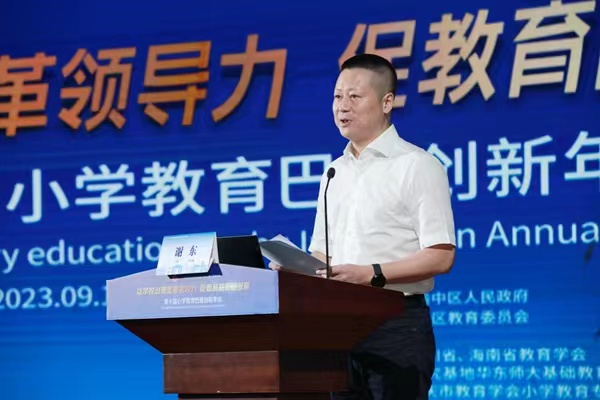 重庆市委教育工委委员、重庆市教委一级巡视员黄腾蛟指出,重庆市委、市政府高度重视基础教育工作,不断深化中小学课程教学改革,涌现出了一批优秀的教学成果,巴蜀小学“学科+”教学成果就是其中代表。他强调,要与时俱进,让成果活起来,进一步深化推广巴蜀成果;加强转化,让成果热起来,各地各校积极学习借鉴,因地制宜进一步创新;踔厉奋发,让成果用起来,鼓励大家持续为建设教育强市服务新时代、新征程、新重庆贡献智慧和力量。