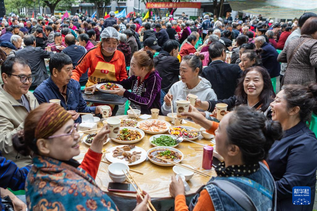 重阳节前夕,重庆市九龙坡区华岩镇石龙社区开展“九九重阳节 浓浓敬老情”主题活动。600余位年满60岁以上的社区老人共享“长寿宴”,在欢声笑语中迎接即将到来的重阳节。