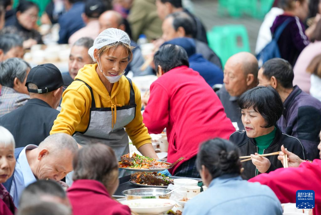10月19日,老人们参加“长寿宴”。新华社记者 储加音 摄