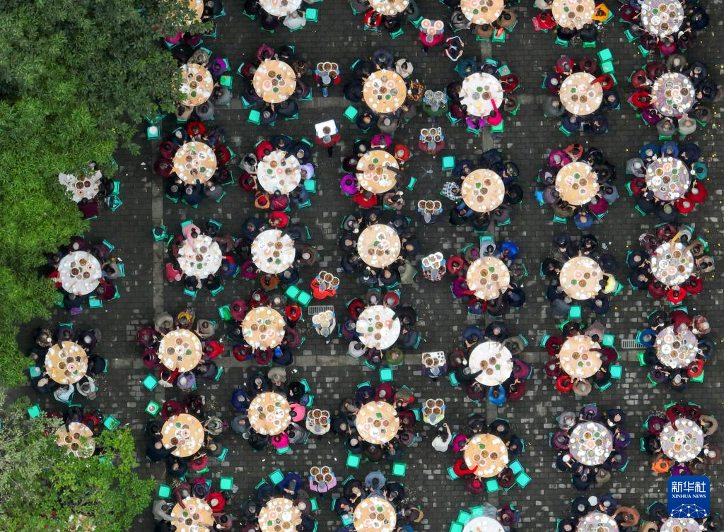 10月19日拍摄的华岩镇石龙社区“长寿宴”活动现场(无人机照片)。