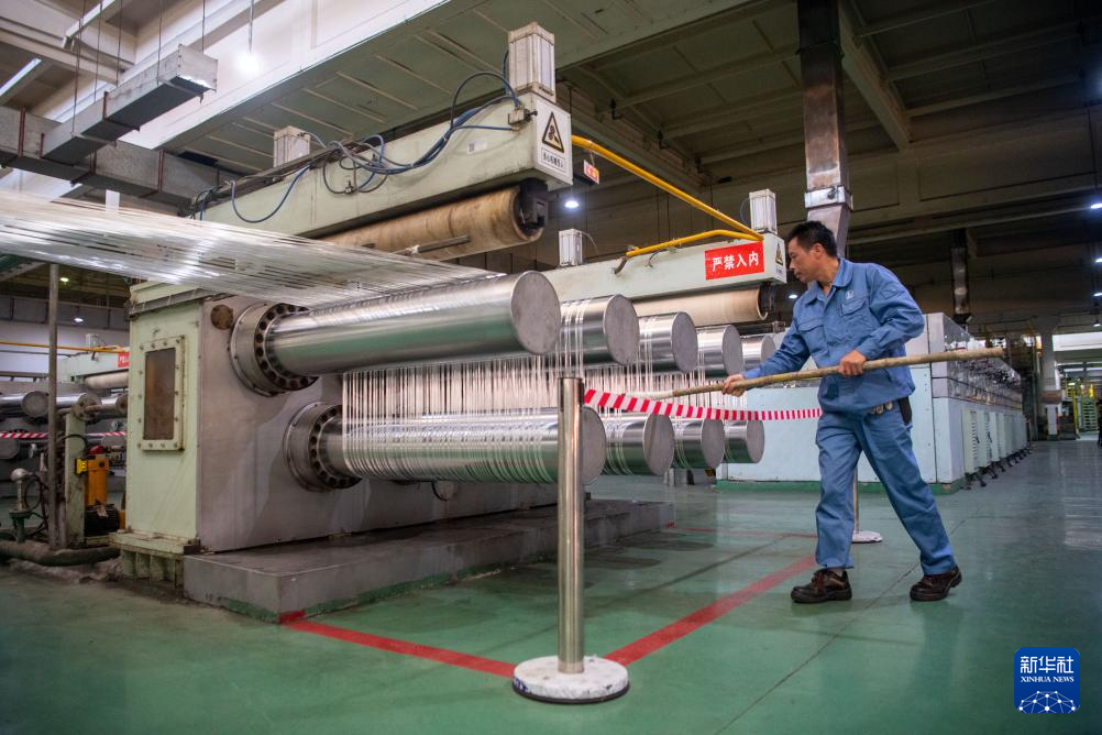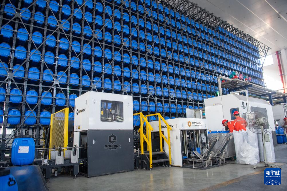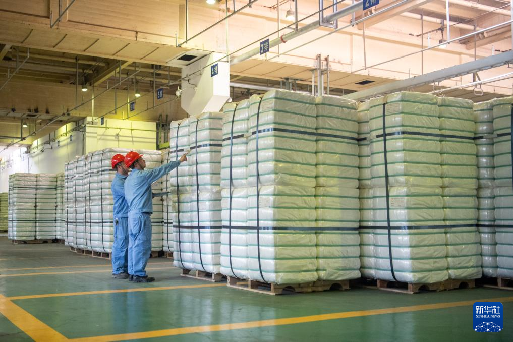 10月17日,在中国石化集团重庆川维化工有限公司,工作人员在查看产品打包情况。新华社记者 唐奕 摄