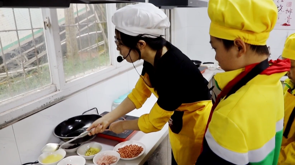 “我们学习的课程有蚂蚁上树、宫保鸡丁,我们的加工技能有(包)饺子。”学生唐毅辰说,“我们在学校里不仅能学到文化知识,还能提高我们的动手能力,而且我周末回家以后,还可以给我的爸爸妈妈尝尝我的手艺。”