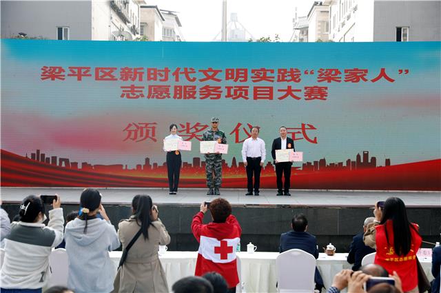 11月1日,区人民广场,梁平区新时代文明实践“梁家人”志愿服务项目大赛举行颁奖仪式。