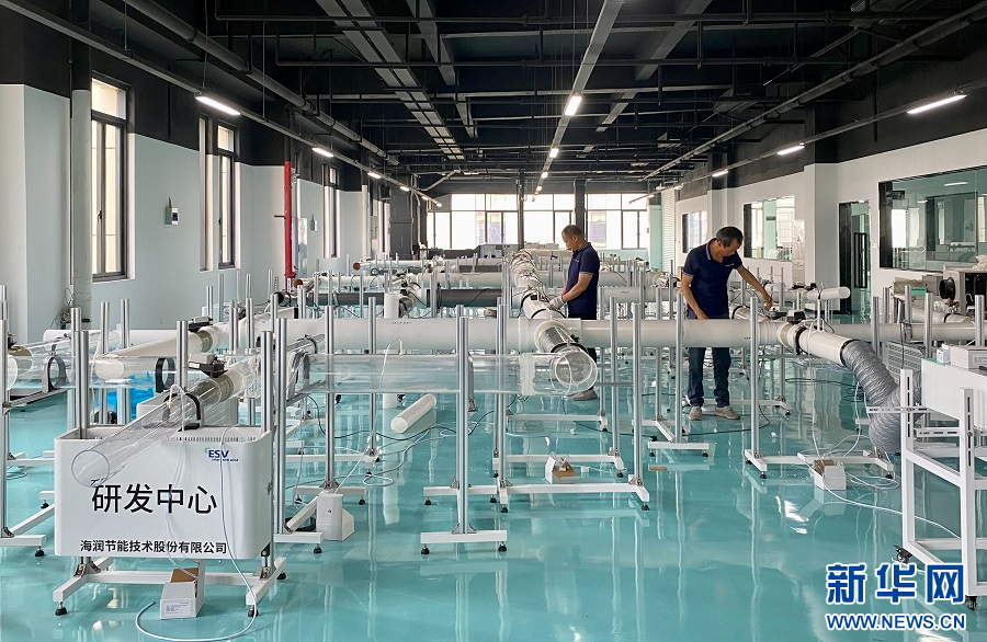 重庆市海润节能技术股份有限公司节能系统实验室内,工作人员正在进行产品测试。新华网 发