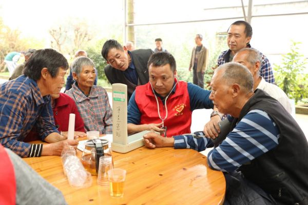 为村民量血压。