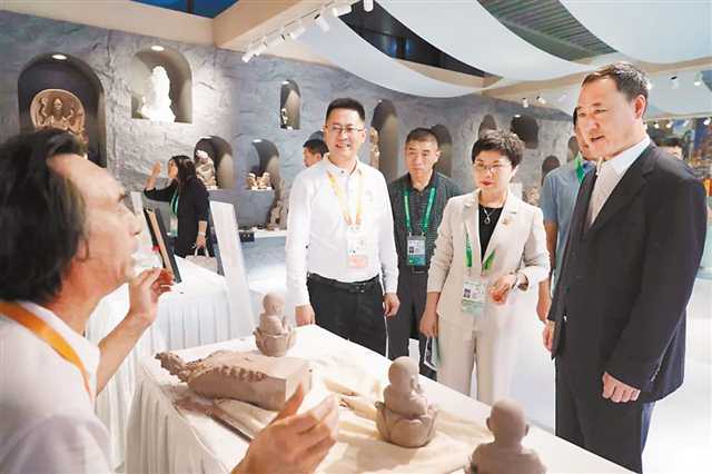 大足区将石雕作品和剪纸、植物染等传统技艺“搬”到了进博会现场,向世界展示具有大足特色的东方文化。