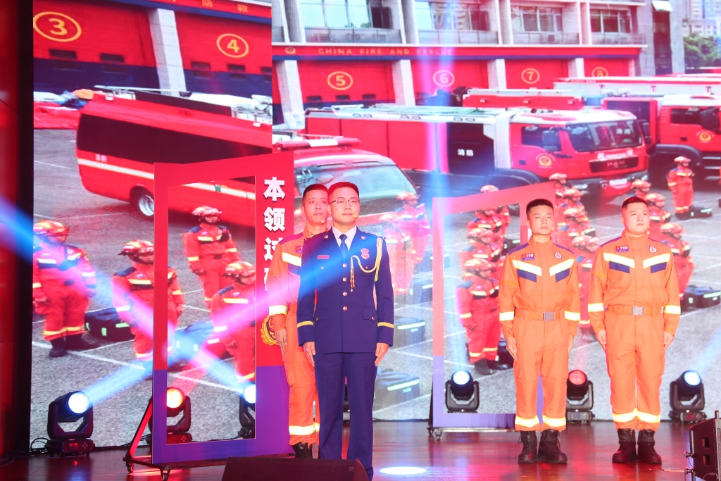 演出中,渝中支队原创歌曲《逆行者》唱出了一代代消防人为民而战、保民平安的执着与坚守;两江支队音诗画《时光之门》回眸了五年来重庆消防的感恩奋进、华丽蝶变;梁平支队的梁山灯戏《男朋友·蓝朋友》用“嬉戏闹”和“扭拽跳”的方式,趣味讲述消防安全故事。