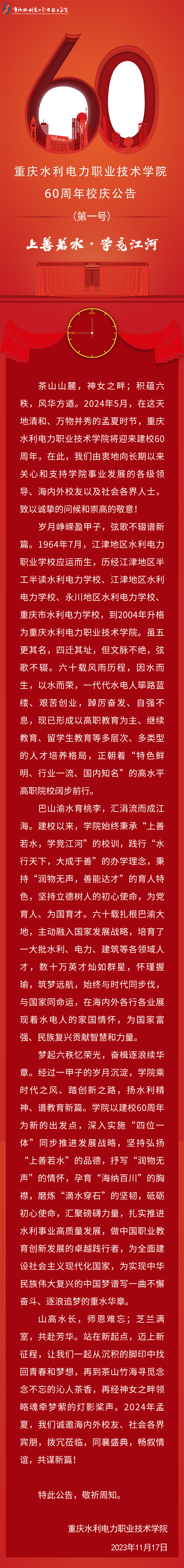 重庆水利电力职业技术学院60周年校庆公告(第一号)发布