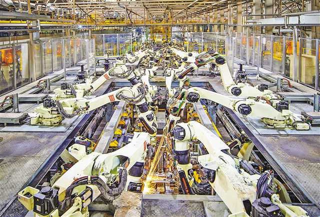 图为11月2日,长安汽车焊接车间,智能机械臂正在精准焊接。(记者 郑宇 摄/视觉重庆)