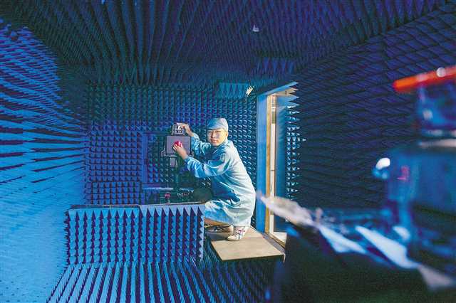 图为7月18日,重庆睿行电子科技有限公司,实验人员正在微波暗室中调试雷达测试系统。(记者 张锦辉 摄/视觉重庆)